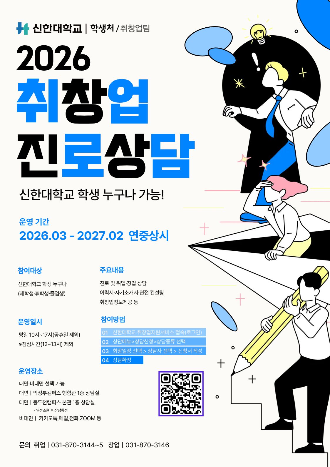 신한대학교 학생처 취창업팀에서 2026학년도 취·창업진로상담 프로그램을 안내합니다.